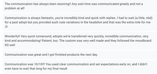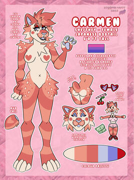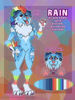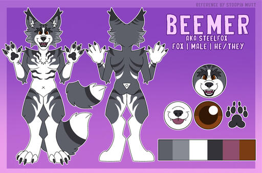 All reference sheets come with a front view, back view, one headshot, a face close up, and a colour palette. Complex references come with up to 4 accessories shown on the sheet. Additional views/accessories/etc are subject to addtional fees.